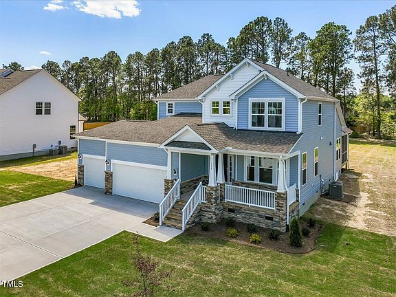 QUICK MOVE IN 3 CAR GARAGE HOME ON OVER A HALF ACRE! FIRST FLOOR OWNERS SUITE. TREELINED, PRIVATE HOMESITE! Welcome to Honeycutt Hills. Located minutes from Downtown Angier and Downtown Lillington. The Middleton plan is a beauty. In the kitchen you will find an ample amount of storage space between the updated cabinets and large kitchen pantry. Quartz countertops, a SS apron sink, SS appliances and gas stove really make this kitchen shine. The main floor is spacious and open with a sizable living room and breakfast area, a space that is light and bright. The primary suite with trey ceilings is located on the main level has a 5 ft tile shower, double vanity sinks with quartz countertops and a walk in closet. Upstairs has the additional three bedrooms. Enjoy the fresh NC weather all times of the year on your screened in porch overlooking your private, treelined backyard. With a homesite site of 0.574 acres, it is perfect for a variety of backyard activities.