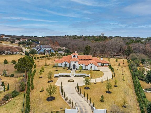 Welcome to Castillo del Lago! This one of a kind Robbie Fusch designed SINGLE STORY estate sits on almost 3 acres overlooking Lake Ray Hubbard. With almost 10,000 sq. ft. under roof, this home has it all. 5 BR, 4.3 BA, game room, gym,custom office, turfed courtyard, outdoor balconies, and 3rd story bell tower. Chefs kitchen with Wolf-Subzero appliances, 4 dishwashers and 3 ice makers. Stunning 2000+ bottle below ground wine cellar encapsulated in stone with formal dining room and sitting room with fireplace. Secret safe room and tornado shelter. Exquisite finishes inc. reclaimed brick and antique French imports. Resort like backyard with lap pool, private pond, creek and fire pit. A true vacation at home oasis!