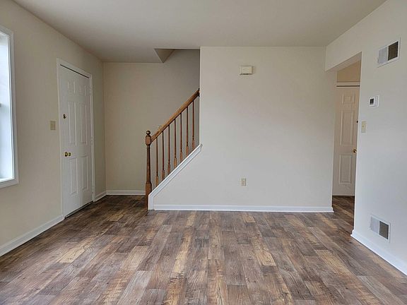 This end unit townhome is located in a lovely E-Town neighborhood on a cul-de-sac street. It offers a sunny living room, open kitchen and dining room, 1st floor laundry room, and doors to a rear deck. Upstairs you'll find a large primary bedroom with walk-in closet, bathroom with double-bowl vanity, and hallway linen closet. Includes an unfinished basement for storage. 1 pet up to 25lbs (at maturity) permitted with additional fees. One year contract, renews month-to-month after the first year.