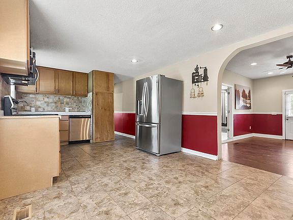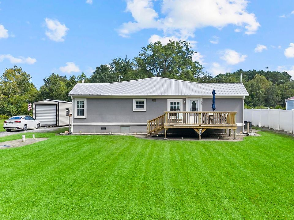 A hidden gem located at the end of the street. This 3br 2 ba home on a large .67 acres lot is the last home on a dead end street. Perfect for children. Huge master bedroom with walk in closet, large eat in kitchen, over size Laundry Rm., nice 10x16 front porch for your enjoyment, white vynal fencing on sides and back, 2 large 10x16 storage building with electricity to both. Metal roof for years of worry free enjoyment. Encapsulated crawl space, stack on Washer and Dryer. kitchen, front bathroom, and bedroom was a manufactured home. The rest of the home was added. Hard to tell when you are in the home that it all wasn't built on site. This is a must see home, both the home and the hidden location. Call today before it sells away!!