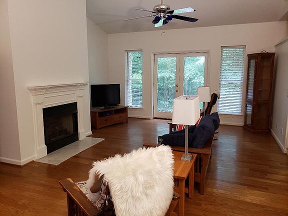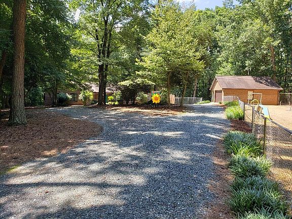 Secluded lot makes this property feel like a retreat. After a rain, the river can be heard clearly. When the leaves are down, it can be seen from the backyard. The house is a single story with high ceiling and lots of windows. Plenty of rooms, lots of closet space, and two garages means there's a place for everything. Brick, ranch-style house is built of energy efficient Insulated Concrete Forms with no load-bearing walls. Lots of windows let in the sunlight and offer a view of the wooded property. Large master bedroom with vaulted ceiling, ceiling fan, and gas fireplace. Master bathroom has vaulted ceiling, 2 walk-in closets, separate shower, and soaking tub. Livingroom has gas fireplace, cathedral ceiling, ceiling fan, and French doors opening to concrete patio. House has kitchen with island, dining nook, separate dining room, laundry room, two additional bedrooms with ceiling fans, one additional full bathroom, and exercise room. Nine foot ceilings.