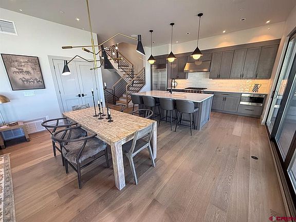 Welcome to The Peaks at Snowmass Mt. Crested Butte's first new neighborhood in 18 years! This location is special. Stunning and private. Each south-facing home features horizon-to-horizon mountain and valley views from every window. There isn't a bad seat in the house! Skiers in the family will find the Silver Queen ski lift & base area amenities are just a short walk away, so no need to drive. The Peaks at Snowmass was designed for ease of ownership with low maintenance and a true lock-and-leave lifestyle. No need to shovel snow or mow the lawn when you are in Crested Butte! The developer is offering a substantial $50,000 decorator concession at closing so you can outfit the home anyway you desire! These modern mountain homes feature three unique levels of state of the art living! The upper level primary suite is air conditioned and offers a gorgeous bath, vaulted ceilings, a washer-dryer space, a large closet, a covered balcony and dramatic views of our valley's amazing peaks. The main level living, dining and kitchen areas enjoy air conditioning, floor-to-ceiling glass and sliders that showcase those same utterly stunning valley and peak views, a massive deck, Wolf-Subzero appliances, radiant in-floor heat, wide plank oak flooring, designer lighting, and a beautiful floor-to-ceiling gas fireplace with a cool metal surround. The main level also includes a bath and a flex space perfect for a home office or theatre use. The lower level features a junior suite with an attached bath and two more bedrooms that share a full bath with a double vanity. There is another washer-dryer set up and storage closets on this level. Two of the lower level bedrooms enjoy dedicated access to the hot tub patio out back. 155 Snowmass is 2,832 SF with 4 beds, 3.5 baths and includes a snowmelt driveway and a heated garage.