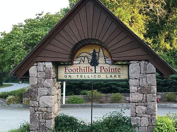 Affordable lake living! Wonderful home with lake & mountain view in Foothills Pointe! This brick basement ranch home features beautiful hardwood floors, fireplace, split bedroom plan,and natural gas heat. Full finished basement with recreation area, exercise and tv area along with lots of storage space! Detached garage is 30 x 40 to accommodate up to 4 cars! Community offers pool, tennis courts, boat docks and clubhouse. Must see for yourself! Schedule your appointment today!