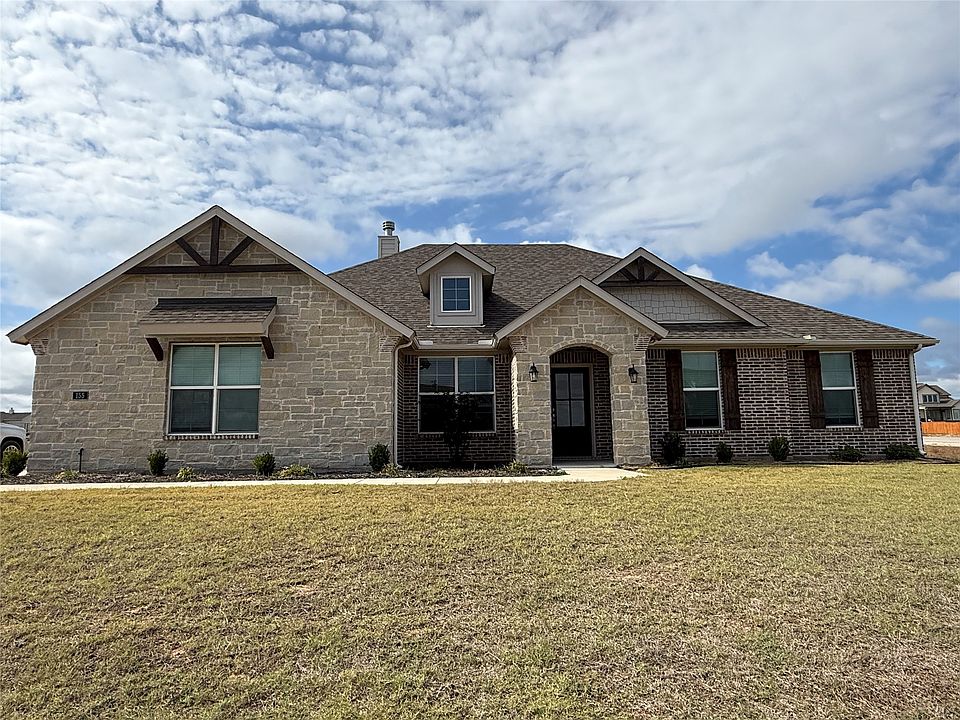 Beautifully maintained 4 bedroom 2 bath home with 2 car side entry garage on lovely .771 acre lot. Once inside this beautiful property, you will find a flex space with glass french doors, which could serve as a home office or formal dining room. The wing on the right side of the home provides 3 splt bedrooms with a shared full bath. The kitchen, dining and living area is spacious and open. Granite counters, island that doubles as a breakfast bar, tile backsplash, stainless appliances and walkin pantry. The stunning stone and brick wood burning fireplace in the living area has a raised hearth and perfect for those chilly nights soon to come. Mudroom with storage just off the garage and adjoing the roomy laundry with full size washer, dryer and folding area. Private primary retreat with ensuite that includes double sinks, large walkin closet, seperate shower and garden tub. Outdoors is a large covered patio that is ideal for an outdoor entertaining space or just a couple of rocking chairs to enjoy peaceful country living. The landscaped lot that includes a sprinkler system, offers plenty of addidional space for a workshop or pool. The community ammenities include a resort style pool, covered playground, shaded picnic area, pickleball court, soccer field, and scenic walking trails and a fenced dog park.