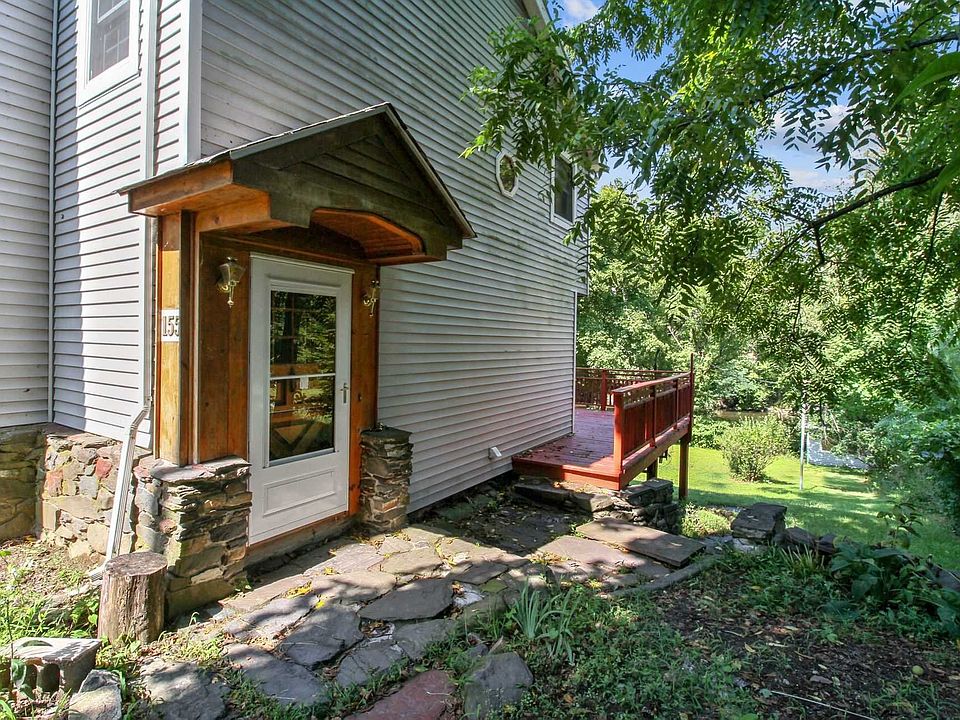 Bring your vision to this cozy Beacon home with creek access making it unique and one and of its own!; Be welcomed by a living room with multiple windows, built in book cases, hardwood flooring, exposed ceiling beams and a working fireplace; Kitchen has a exposed beams, a working fireplace and wood cabinets too offering storage and enough room for an eat-in area; Kitchen has slider leading to large deck; Deck is perfect for enjoying evening grilling or morning coffee throughout the Summer and shoulder months and overlooks flat, usable back yard and creek; First floor also has a half bath and laundry area; Second floor offers 2 bedrooms and a full bath; Additional storage is available in the basement; You will surely appreciate this absolute prime Beacon location!; Walk to Main Street to enjoy shops, galleries, restaurants and coffee shops; Appreciate the mountain and river parks, all of which are within close proximity; Home is close to I84; Drive, bike or even walk to the Metro-North train station; To see this home is to fall in love the potential of it; Bring your vision to make it your own!