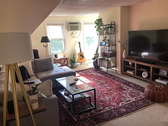 Lovely 2 bedroom + den apartment with extensive closet space. Large eat-in kitchen with double oven and microwave and on-site outside parking (one spot). Perfect apartment for work from home! Super private and the apartment is conveniently located just a few short steps to beautiful downtown Summit. 7 minute walk to midtown direct train, shops, and schools. Heat and water included in monthly rent along with garbage pick up and all maintenance. Window unit air conditioners and all appliances provided by landlord. Complementary washer and dryer located on premises. Landlord is looking for a single occupant with no pets or children. Apartment located above landlord's office and therefore grounds are immaculately maintained and the location is safe and secure. Owner pays heat, hot water, trash, snow removal, landscaping. Renter pays electricity, phone, cable. No pets allowed.