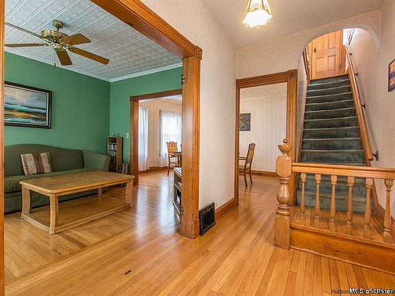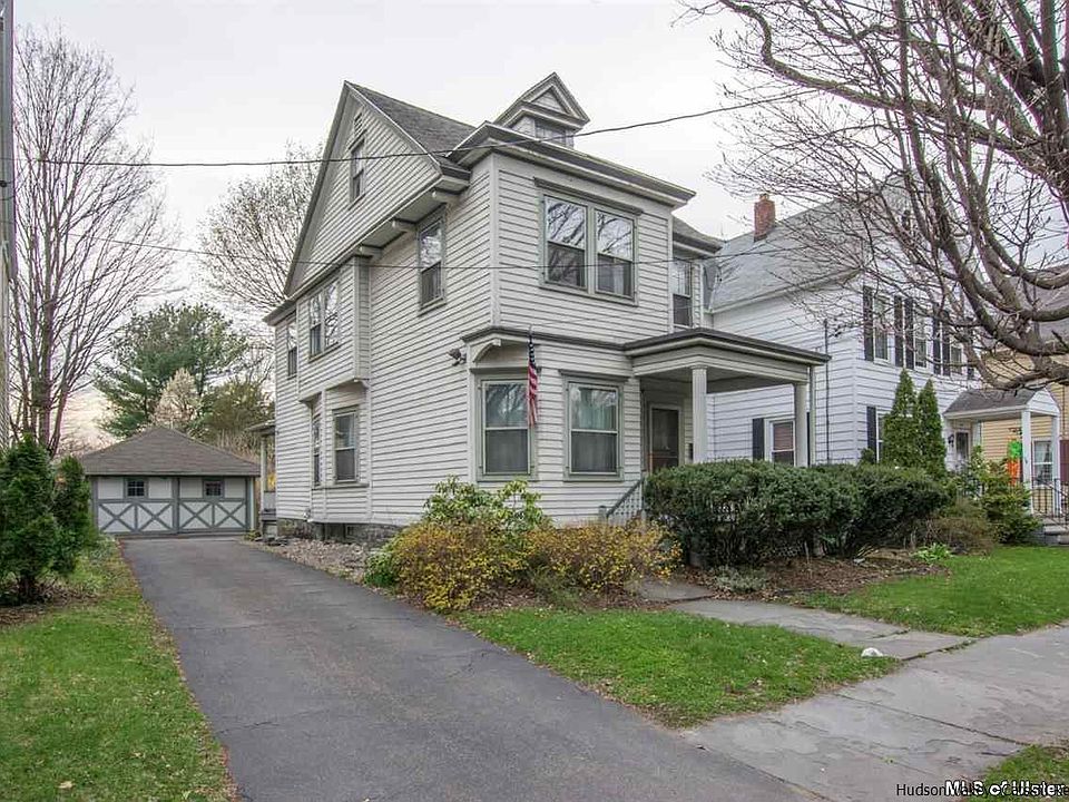Charm abounds in this beautiful home with so many original details. An old fashioned front porch, perfect for enjoying the morning coffee, welcomes you as you are greeted with the original wood door to this home with so much character. There are hardwood floors throughout, an original wood banister, tin ceilings & gorgeous mouldings and interior doors stripped down to the natural wood. A nice sized living room and large dining room are perfect for entertaining along with a classic country kitchen. There is a full dry basement & walk up attic for storage. So great !! Another bonus is the two car garage. The extra deep fenced yard is a rare find in the City. There is room for gardens as well as family and friends. A great, convenient city location close to everything that you can imagine. Now is the time to be a part of this Vibrant Kingston Community with it's newly energized Uptown Stockade Area, the Downtown Rondout Waterfront and the Mid Town Art Scene. There is so much to do here and you are also close to Woodstock, Saugerties, New Paltz and High Falls. So grab your bike. This Historic City is waiting for you.