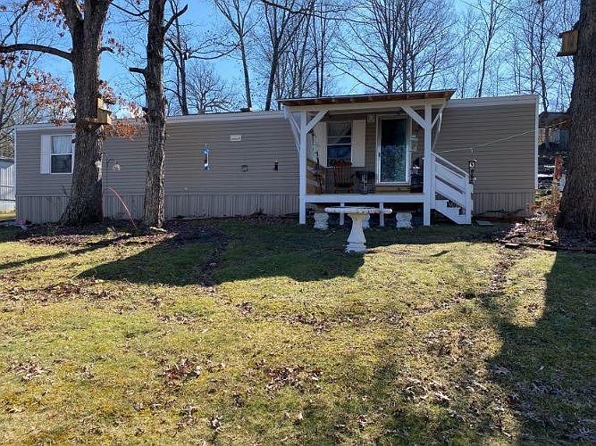 This 14 x 60 single-wide mobile homes features 2 bedrooms, bath, living room, kitchen, front and rear porch, electric heat, central air, city water and city sewer. Other amenities include: barn w room overhead, covered cook-out shelter, kitchen appliances and situated on a 3 4 ac lot.