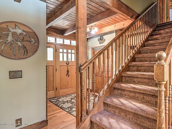 MAGNIFICENT HOME ON 6.5 ACRES WITH AN ATTACHED EXTENDED FAMILY APT./ ITS OWN PRIVATE ENTRANCE, BDRM, BATH, FULL KIT., FIREPLACE, WASH/DRY HOOK-UPS & SCREENED-IN PORCH! THIS 6-BED /5 BATH (3 FULL/2 HALF) IS A 3-LEVEL INCREDIBLY CRAFTED COUNTRY HOME WITH TIMBER WOOD FRAME SURROUNDED BY A TREED SETTING & HORSE ARENA W/STALLS! FEATURES INCLUDE 2-CAR GARAGE, CENT. VAC, & SPACE ALLOWABLE FOR 4 TRAILERS, UNIQUE KITCHEN WITH ITS STAIN-GLASS LIGHTING, CORIAN COUNTERS,HICKORY CABINETS, SS APP, 32''EXPOSED FLOOR-JOIST BEAMS, OVER-SIZED FM RM WITH A WOODBURNING STOVE, LG LIVING RM BOASTS A FL-TO-CEILING STONE FIREPLACE THAT LEADS TO AN INSIDE BALCONY & 10 CUSTOM HUGE WINDOWS OVER-LOOK THE HEATED IN-GROUND POOL/FIBER OPTIC LIGHTS AND WATER-SLIDE & SURROUNDED BY A FENCE-STONE WALL & MORE!