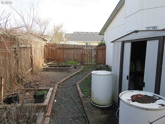 Built in 2000 and spec'd with upgrades to flooring, cabinets and baths. 9' ceilings on both levels, bull-nose corners throughout and a huge garden tub in the master bath with his and hers sinks and an 8'X8' walk-in closet with built-ins. Laminate flooring installed on lower level except for bathroom and kitchen. The side yard was converted to a full garden area in 2013 using multiple custom made ceder raised planters. This area also has a 10'X10' shed with concrete floor and a walk-path for access from the front yard to the back yard. The backyard has a 12'X26' ceder deck on the house, with a 18'X10' paver patio connected to it with a fireplace and swing for entertaining guests. There is a fenced section in the backyard with room for an above ground pool or kids play set. The front yard is grass with an automatic sprinkler system. The sprinkler system also has zones in the garden and back yard for the grapes and trees. The front yard also has a 12'X30' RV parking space with a standard RV style electrical connection post.(like at campsite). The water heater has been upgraded to a tankless style for unlimited hot water, and the dishwasher was upgrade 2 years ago to a Kenmore elite premium. The stove/oven is natural gas GE, and was upgraded as well. The fridge is a whirlpool side-by-side and will come with the house. The washer and dryer are also Kenmore elite HE from loading, and also come with the house.