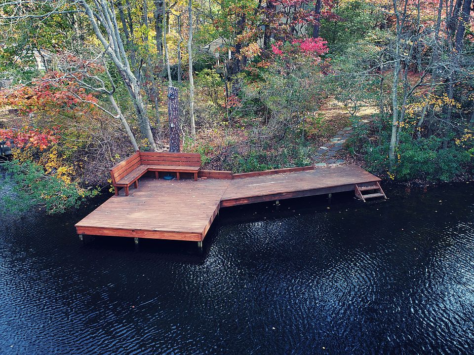 HOME IS WHERE THE LAKE IS! This Beautiful lakefront property offers 4 bedrooms, 2 1 2 baths, 2500+ sq ft of living space, and boasts 120' feet of gorgeous lake frontage. As you enter through the front door and into the stone floored foyer, you will notice the gleaming hardwood floors in the living room. The the living room has a brick wood burning fireplace, exposed wood beam ceiling, built in shelving, and large bay window with views of the lake and nicely landscaped yard. The formal dining area with chandelier, chair rail, and newer plush carpet leads right into the huge kitchen. In the kitchen is a second bay window providing even more fantastic views of the lake. The huge eat in kitchen features brick flooring, a second wood burning fireplace, double wall oven, tons of cabinetry, extra large pantry, and an added built in desk area. The moment you open the back kitchen door leading you outside is the moment you will truly discover that life is always better by the lake. Follow the stone pavers down to your private L-Shaped dock, with added built in seating, and get ready to relax and enjoy all of the perks of living lakeside. The upper level consists of the master bedroom with master bath, 2 generously sized bedrooms, and full hall bath. The lower level consists of the family room, another bedroom, half bath and sliding glass doors leading you directly outside to the huge stone paver patio. Access to the oversized two car garage, laundry room, and utility mud room is just off the kitchen. There is also a partially unfinished basement. Living in Medford Lakes has so much to offer, from swimming in the summer, to fishing in the fall, and ice skating in the winter, this town truly is a year round playground.