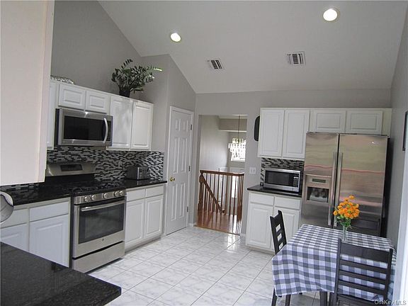 Move right into this beautiful, young (2000) & very spacious (2300sf) contemporary 4 BR 3 BA high ranch (perfect in-law suite on the 1st floor) w cathedral ceilings, skylights, oak floors, & lots of updates, located in Pearl River w Nanuet schools & low taxes! ($13,888 w the basic star discount!) There's a spacious tile entryway with 2 coat closets, a large living room w a fireplace which opens to formal dining room, a huge updated eat in kitchen w granite counters, a pretty back splash, newer stainless steel appliances, & a door leading to a deck - perfect for BBQing. The master BR suite has a walk in closet & a private full bath w a jetted tub, stall shower & a new granite top double sink vanity. Two more spacious bedrooms and pretty hallway bath. Downstairs there are laminate floors, a large family w a door to the outside, a large bedroom, full bath & laundry room. An oversized 2 car garage. New driveway, water heater (2020), C/A (2014). Close to NYC train/bus/pkwys/TZ bridge.