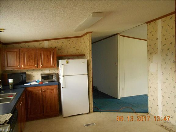 Double wide on 1 Acre located in county, secluded near end of dead end road. Potential for another full bath & fireplace. Split floor plan and has a remodeled MBA w/claw foot tub, ceramic surround and separate shower. Roof leaks and has ceiling damage.
