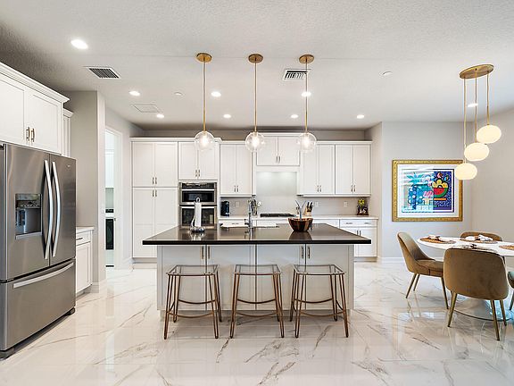 Beautifully upgraded and decorated Matera coach home on Tresana in Jupiter Country Club. Over 90,000 in custom upgrades and designer feathures. Light and bright with lots of impact windows and doors. Fabulous courtyard entry, new glass front door, upgraded porcelain tile throughout main living areas. Huge great room with Living/Dining room combination, custom built-ins, volume ceilings, sliding impact glass doors leading to screen enclosed patio overlooking large lake and the 8th fairway. Extra large chef's kitchen with upgrade stainless appliance package, white shaker cabinets, custom pantry cabinet, quartz counter tops, gas cooktop, extra-large island with storage cabinets and breakfast bar. Large space for kitchen table. Upgraded custom cabinets in laundry room.