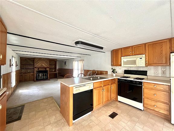 Opportunity awaits! Move in ready mobile home on 0.722 acres! Enjoy living on your own lot without monthly maintenance fees!! Or live in while you build your dream home! The kitchen is open to the living room with an island for extra seating! The wood burning fireplace makes it extra cozy, too! Two bedrooms in the back with a full bath and laundry area. Newer furnace! Off Street parking and Hempfield Area School District! Close to Youngwood Shops and restaurants! Quick turnpike access!
