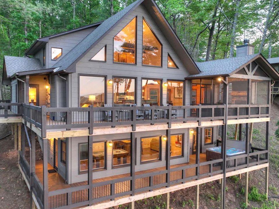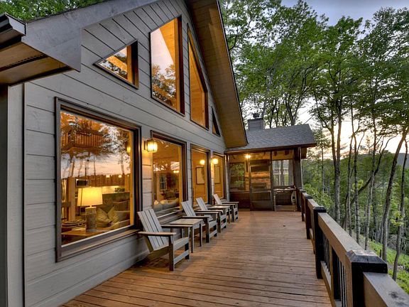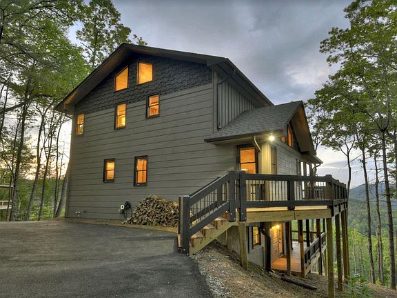 This is a custom cabin, finished in January of 2022. Relax in this SUCCESSFUL RENTAL, ALL FURNISHED property. The View is an amazing range of LONG RANGE MOUNTAINS and woods all around. The living room offers a spacious seating area and large living area with a gas fireplace. The kitchen and dining area, which are both part of an open floor plan with the living room. The kitchen is fully equipped with all your cooking needs and appliances, double oven, and a farm house style stainless sink. The dining area is situated with open windows all around. Just off the dining room is an amazing outdoor space completely screened in, with an outdoor lounge and fireplace! On main level you'll find the master bedroom offering a king bed and the spa like master bathroom, you have a large walk in shower and an amazing soaking tub complete with heated floors! Half bath on main. The lower level den and Game room features a bar complete with seating, a sink and mini drink refrigerator, upstairs is complete with 2 additional bedrooms and a Jack and Jill bathrooms. This cabin is the perfect mountain retreat!