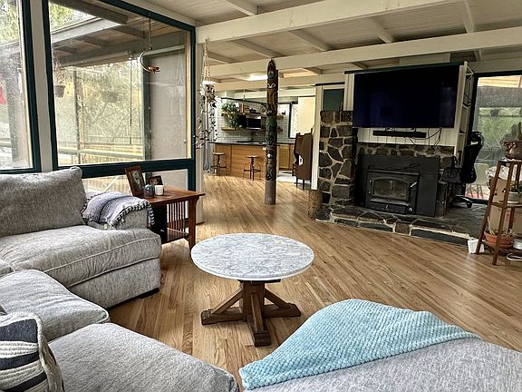 SEPARATE LIVING SPACE (ADU) for extra income or ???? Striking High-Quality Updates Throughout This Uniquely Designed Home! Gleaming New Hardwood Floors, Cambria Countertops, Skylights in the New Kitchen, Whirlpool Side-By-Side Refrigerator, LG Induction Range, Quartz-Top Bar with Tap in the Open Dining Space Looking Out on the Deck and a Private Wooded View! Beamed Ceilings Throughout, ADU is on the Downstairs Level Featuring Sleeping Space, Living Room, Kitchen, 4th Bedroom and a Full Bathroom Too! Decks on Both Levels, New Roof in 2022! Enjoy this Quiet Southwest Eugene Neighborhood Today!