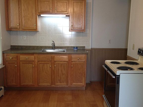 One bedroom, first floor unit. Range & refrigerator are provided. Shared laundry. Quiet neighborhood and convenient location. No pets allowed. Off street parking. Rent is $600/month and includes sewer and trash. Available August 1.