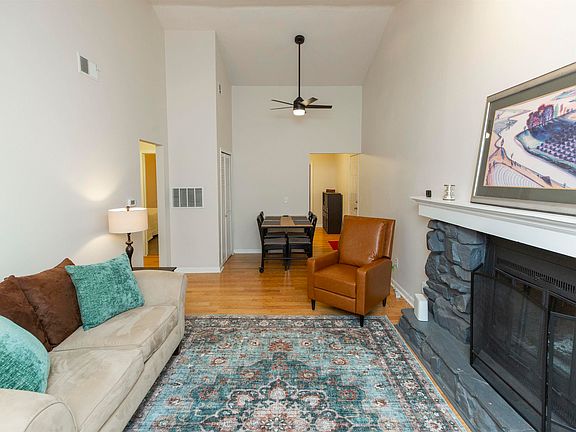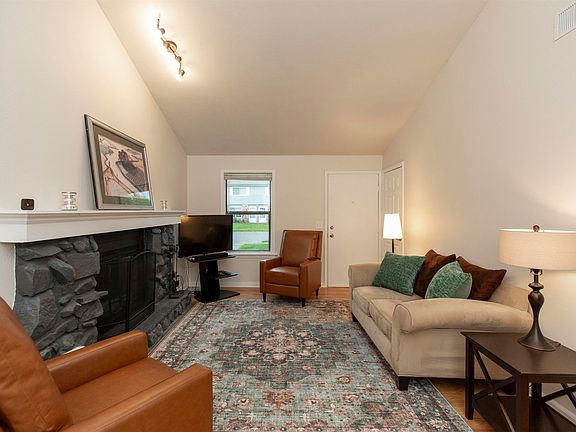 Welcome to hassle-free living in this rare, move-in ready villa in Town & Country estates. Snow removal, lawn care, & exterior maintenance is covered for a monthly HOA fee of $140/month. This vaulted and spacious 2 bedroom, 1 bathroom home has a wood burning fireplace, efficient layout, and private patio area to relax among the trees. Conveniently located near shopping, dining, and entertainment. Extra deep garage for storage or tools. New Hot water heater. All electric appliances and utilities. High speed fiber internet available.