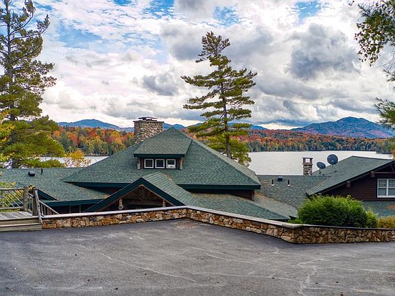 Emerald Hideaway, a remarkable property located prominently above the waters edge with mountain vistas from every window, bringing the stunning lake and mountain views indoors. Tastefully done in turnkey condition, built new in 2005 by one of the areas premier builders and architects. The home is setup as two fully functional living areas, one for the owner, with gourmet kitchen,master suite, 3 bedrooms, bathrooms, a relaxing Zen spa.The adjoining East side of the home offers a separate guest area with its own chefs kitchen, great room, deck/ porch, 5 bedrooms and bathrooms, 60kw auxiliary generator. The waterfront is very private and has a large finished two story boathouse with great room area and large sitting porch.There are also three deepwater slips, automatic garage doors. A well known deep water lake that has access to over 27 miles of the scenic Saranac Chain of lakes for boating, fishing and recreational opportunities at your doorstep. There is also funicular to the water.