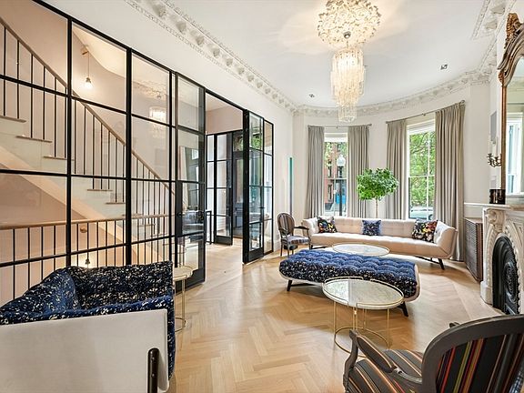 Magnificently renovated single-family townhouse on a quiet, tree-lined street in a premier South End location overlooking Hayes Park. This impeccably designed home provides an astonishing combination of historic architecture, artfully infused with contemporary design—something not so easily done—all with masterful attention to finishes and layout. The gracious floor plan includes an elevator, grand double parlor living area, gourmet kitchen featuring direct access to the elegant garden patio with fountain, full floor primary suite, and a spectacular roof deck with panoramic city views. Additional features include restored original Victorian mantles and moldings, industrial steel and glass partition walls throughout, French white oak herringbone floors, custom Downsview cabinetry, surround sound, butler’s pantry, wet bar and refrigerator on every floor, and 2 full parking spaces. This architecturally significant home is unparalleled, offering something special for the discerning buyer.
