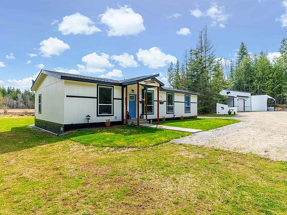 Welcome to your own slice of North Idaho! This pristine 5-acre parcel features a nearly new 3 bedroom 2 bathroom 1500 sq ft home with an open concept layout, large kitchen with pantry and master suite with private bathroom. All bedrooms have spacious walk-in closets and ample natural light. Appliances are Energy Star rated. 20x50 shop with 220 electricity, carport and covered RV parking with full hook-ups. 30 + gpm well, underground powerlines and no CC&R's. Enjoy the oversized backyard with a fenced garden area and numerous out buildings. This property has something for everyone with multiple trails throughout the property for walking, biking or riding. Live the dream right on your own property!