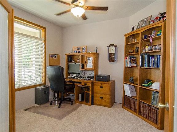 Pride of Ownership is evident in this extremely well maintained 1958 sq ft home, with beautifully landscaped front and back yards (all plants are on drip watering for easier maintenance). Highly sought after split floor plan with guest bedrooms on one side and the roomy master suite with private bath and walk-in closet on the other. One bedroom, with French doors, is currently being utilized as an office. However, there are 4 bedrooms total! The oak floor entry leads to the spacious living room with gas fireplace overlooked by the dining and kitchen areas. What a nice kitchen! Very roomy with lots of cabinetry and counter space as well as an island breakfast bar. You can prepare meals and still be part of the family activities or keep an eye on the kids in the backyard. The dining area has a door leading to the backyard and covered patio--perfect for those summer barbecues. Extra wide concrete driveway leads to RV parking behind gate. Call NOW for appointment!