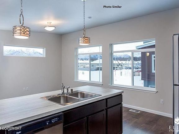 Merry Christmas to you!! 12 month lease gets first month Free. Partially furnished w/ new furniture. Can be removed. Brand new construction two story town home! Close to JBER, UMED, and shopping, trails, hiking and more. SS Appliances, heated 1 car garage. Two bedrooms upstairs and one bedroom downstairs. On demand water heater, washer/dryer in unit, small common area fenced, decking, all maintenance interior and exterior included. Tenant pays G/E/R only, high efficiency units. Only 2 left