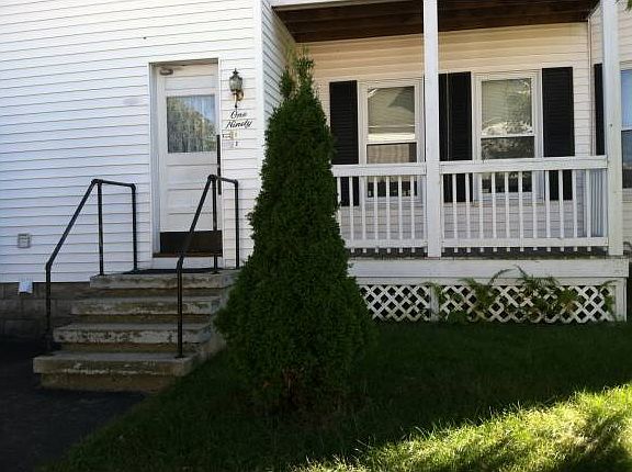 Clean and well maintained first floor 3BR unit with a corner lot 2 family home featuring all Harvey Industries windows and central forced hot air heating system and a nice porch, nice little yard and trees besides a 1 car detached garage for this unit. Laundry hookup is in basement and 1 small cat or dog allowed with additional fees for this besides deposit. Ready for immediate occupancy. Call now for an appointment to view.