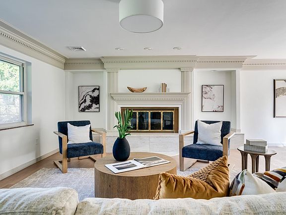 Discover this stunning, fully renovated property boasting over 3,100 square feet of living space on over an acre of land! Featuring top-of-the-line LVP flooring throughout, this home offers plenty of room for entertaining. Enjoy cozy evenings by the wood-burning fireplace in the spacious living room, complemented by beautiful crown molding. The open floor plan seamlessly connects the dining room, which opens to the backyard patio (50x18), and the modern kitchen equipped with new appliances, quartz countertops, wood cabinets, and a pantry, plus bar seating. The first-floor primary suite features a fully renovated bathroom with dual sink vanity and custom tile finishes. Upstairs, you will find a full bathroom with dual sink vanity, three additional bedrooms, including one with access to a large deck. The expansive backyard offers additional space to entertain and the 3 car oversized finished garage offers a custom workspace. HVAC 2024