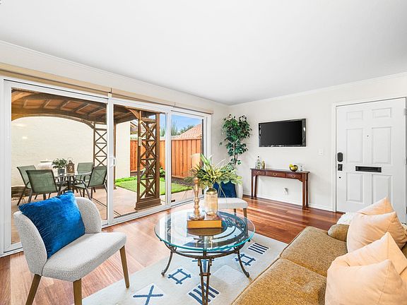 This inviting suburban sanctuary is an upgraded end unit townhome in prime location w/private patio & attached 2-car garage. Enjoy Sunday morning coffee under the shaded pergola or entertain in the private outdoor space. Newly refinished hardwood flooring on the 1st floor. The eat-in kitchen with ample natural light features granite slab counters, contemporary cabinetry & light fixtures, newer tile flooring & Bosch dishwasher. The upper level primary suite offers customized walk-in closet with new slider barn door & ample storage. The primary bath is upgraded with step-in shower, sink, vanity, light fixture & more. Two guest bedrooms w/mirrored closet doors & updated guest bath are located on the entry level. Additional features include freshly painted interior, newer heating/ac unit & spacious attic storage. Need extra storage for your RV/trailer or boat? This is the place! The complex offers RV/trailer/boat storage lot + clubhouse with in-ground pool. Convenient proximity to award-winning schools, the Arroyo walking trail w/occasional wildlife sightings, Ace commuter train & the heart of downtown Pleasanton. Investors welcome!