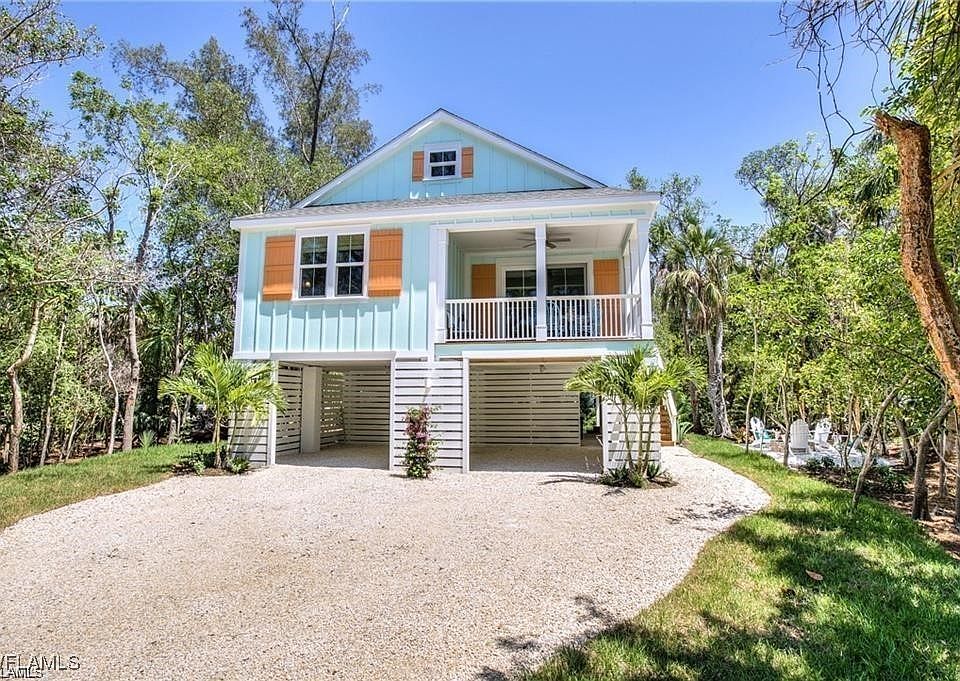 Built brand new with impact resistant everything in a climate controlled factory, delivered and placed on its concrete block pilings in 2019. Solid 2 X 6 construction and completely hurricane resistant means your professionally designed and decorated dream beach cottage impenetrable to storms awaits you on beautiful Sanibel Island. This charming designer home is Island living at its best. Situated on a 100' x 100' nicely wooded corner lot which is close to everything. Island Shops, restaurants, and Jerry's Grocery are just moments away and right on the bike path. Designed and created by Dawn Hillman who has completed 4 other custom homes on Sanibel (and featured on HGTV) with master craftsman Bruce Worth of Hickory Creek Builders. Custom carpentry and built-ins throughout create charming and inviting living spaces with 3 spacious bedrooms - 2 full baths with every attention to detail. Professionally designed/decorated, turnkey, and fully furnished ready for you. Built under the strictest quality control conditions and delivered to the Island current with all local and state codes with all impact glass windows and doors. Its performance during Hurricane Ian in 2022 is proof.