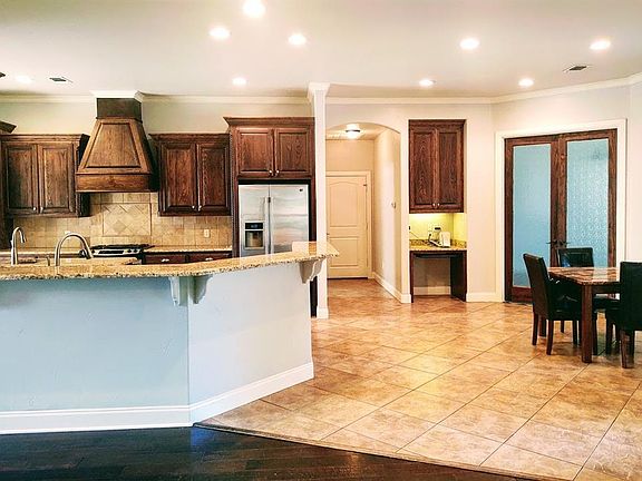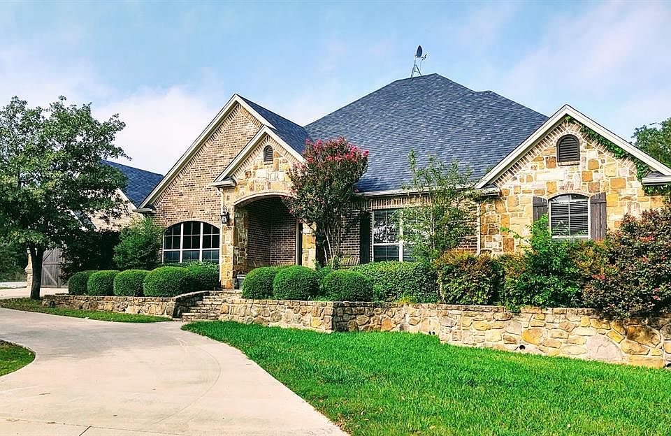 Stunning home with beautiful in ground gunite pool & spa, gourmet kitchen with stainless steel appliances, granite, custom cabinets, island with prep sink, breakfast bar, separate breakfast area, formal dining room, game room w half bath .Open floor plan-with rock fireplace , hardwood floors, large windows .Master suite, boxed ceilings, crown molding, over sized walk in shower, garden tub, over sized 2 car garage ,insulated shop w bath & professional paint shop. Large utility room with Custom cabinets and Storage lockers. Close to Amon Carter Lake and golf cart distance to Twisted Oaks Golf Course. Bring your water toys, golf cart and clubs and relax in this stunning custom made home.