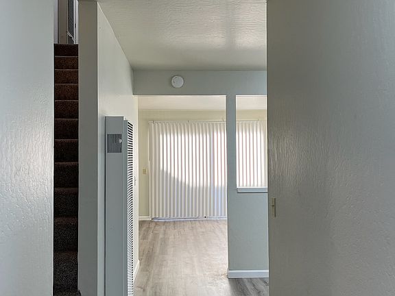 New Paint, Appliances and Flooring. Close to schools and stores. Dedicated Carport parking. Water/Sewer, Garbage and heated water included. Common areas , large backyard and 1/2 bath downstairs. 2 bedrooms and full bath upstairs. No Smoking . No Pets. Owner will clean carpets when tenant exits. Cost for cleaning will be subtracted from deposit.