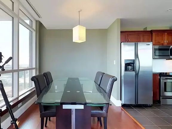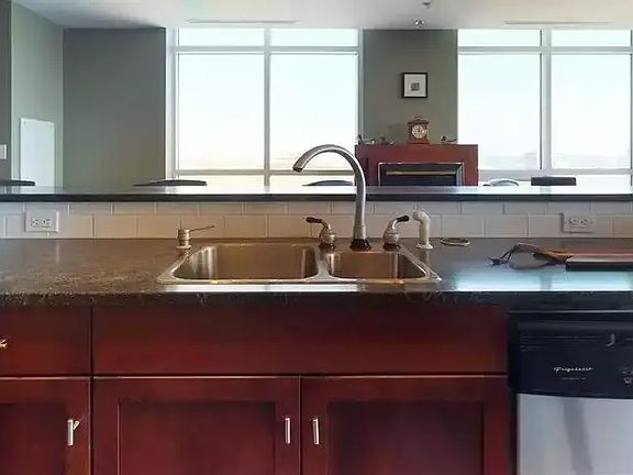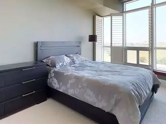 ruly a captivating panorama! The ultimate layout for entertaining, this sunny unit is loaded with upgrades. Main bedroom plus den both feature floor to ceiling windows, and a fantastic oversized custom chefs kitchen with gorgeous soapstone countertops and eating bar is the centre of the open-concept living and dining space, all with breathtaking views. The master boasts a spa-like ensuite with a jetted tub and separate shower and there is a private powder room for guests