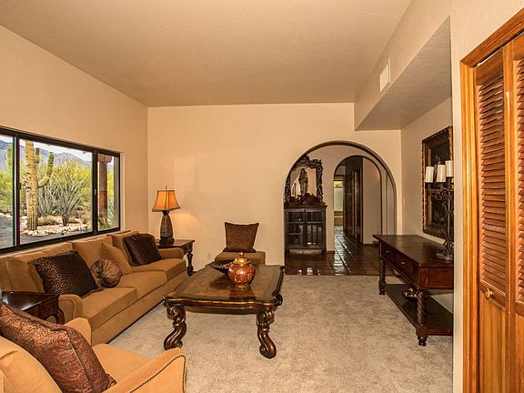 For more information on this property, contact the Listing Agent, Pamela and Roger Harlan at (520) 977-8660 or P-R@harlans.com. If you get too close you might fall in love! Home has been re-imagined with fresh paint throughout & handsome furnishings accenting the open-beamed ceiling, graceful arches and fireplace. The ambiance of an older SW hacienda & move-in ready. Need space for home office, artist studio or for mother-in-law? This fits the bill! Split floor plan. Entertain guests or just sit back & enjoy the 60-ft long covered patio overlooking the lovely back yard pool & spa, backing up to lush desert landscape. Great Foothills location--easy access to town from First & Orange Grove and close to shopping, as well as great restaurants at La Encantada or Casas Adobe. See floor plan in attached documents.