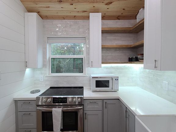 This home renovation will take your breath away! Completely remodeled from top to bottom, this home features luxurious upgrades such as quartz countertops, under cabinets lighting, custom kitchen chandelier, custom showers, LED lighting, and more. With a new roof in 2022 and Hardie Plank siding, this home is both stunning and durable. Don't miss out on the nickel gap shiplap interior and soft open/close barn door. Perfect for anyone seeking a one-bedroom, one-bath retreat with a cedar-lined closet. Call for your showing today!