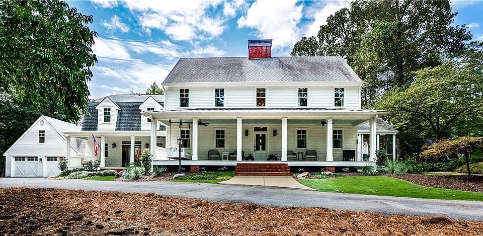 Let the hustle of daily life fade away as you pull in to 1550 Lackey Road. This one of a kind home set on 4.2 lush acres was constructed in 1979 to replicate a 19th century salt box style home and to this day exudes unparalleled elegance and comfort. Whether you’re hosting large gatherings or seeking a peaceful escape, this property provides it all. As you approach the home via the dirt road and winding drive, the hustle behind you begins to quickly fade. You will be captivated by the inviting ambiance of the exterior of this beautiful house that truly says “you are welcome here”. If you are a porch lover, you will love the 2 large front porches, one with a bed swing that will make you never want to leave. Additionally, there is a screened and grilling porch that overlooks the pool. Out back, there is more entertaining space under the covered patio overlooking the yard and perennial gardens. Step inside to discover an interior that perfectly balances rustic charm with sophisticated refinement. The main home features stunning 11-inch pine floors salvaged from a historic building that add warmth and character, complemented by 140 year old rough-hewn wood beams that create a welcoming, timeless appeal. Five cozy fireplaces are strategically placed throughout, providing comfort and elegance to every corner of the residence…something hard to find in modern homes. There are 5 generously sized bedrooms which include 2 primary suites, and 5 and a half baths. This home offers lots of privacy yet is also the perfect home for entertaining. And there’s more! You will find a quaint guest/carriage house next to the pool with the same charm as the main house. It includes a bedroom, loft space, full bathroom, full kitchen and laundry. More? Yep! Out back, find a beautifully built 20x24 garage barn constructed in 2023 with rough sawn pine and a 5 inch mono slab concrete floor perfect for storage, cars or a work space. This home its truly the epitome of town and country living. You will be nestled back on a quiet, dirt road and feel miles away from the world when you want to, yet minutes from Canton Street, Downtown Crabapple, Downtown Woodstock, Avalon and Downtown Alpharetta. Do not miss the opportunity to own this one of a kind estate.