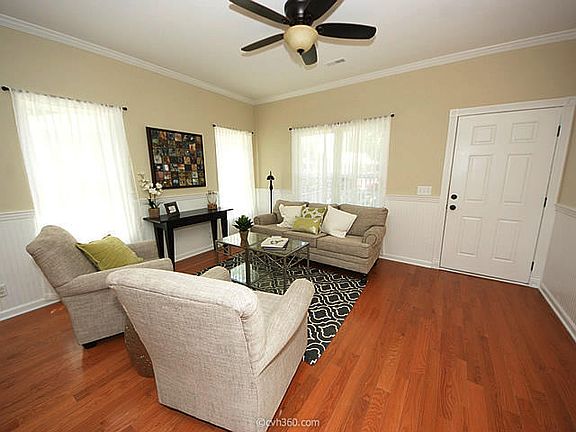 Cute one story home with metal roof and front porch on a wooded cul de sac lot.