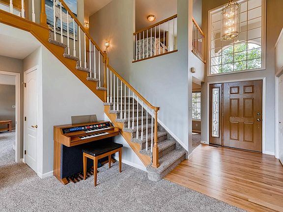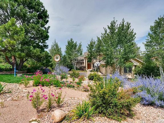 This Main Floor Master plan is a bright & open layout from the moment you walk in the door! Youâll be greeted with a 2-story tall foyer, formal living, double staircase & grand dual sided-stoned fireplace. Features a Large master suite & 5-pc master bath, open kitchen has gorgeous cabinets w/ under cab ltg, full backsplash & gas stove top! Upstairs are 2 add'l Lg beds + loft (possible 5th bed). Home has been newly painted on the inside & ext front of home recently repainted as well. BRAND NEW Carpet on main & upper levels, refinished hardwood floors. Over .5 acre w/ plenty to enjoy incl. a 4-hole mini golf course! Enjoy the Paths, sitting areas, 2 waterfalls & 2 decks perfectly private to sit & soak up the view & crisp Colorado air! Dual zone heating system & finished walkout bsmt complete with a full in-home theater with a 100" screen (all movie equip included)! Bsmt has wet bar, 4th bed, full bath, workout rm, & HUGE rec rm for pool table, ping pong, poker / bunco games & more!