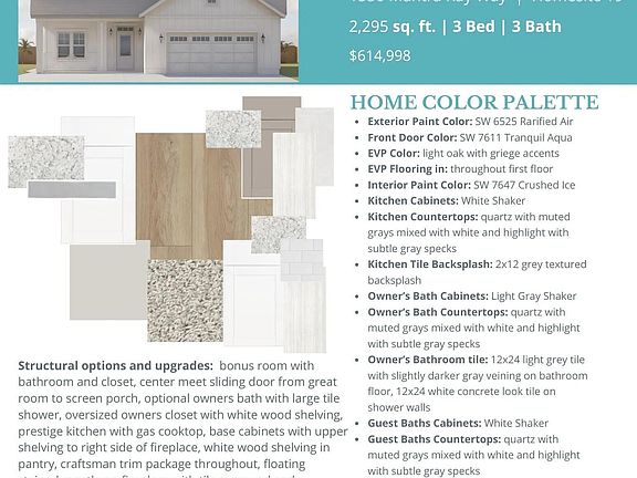 The Sanctuary at Sunset Beach is a beautiful community just a couple of miles away from the beach. Bill Clark Homes' wonderful Bedford home plan in the Farmhouse elevation boasts 2295 sq. ft. with 3 bedroom and 3 baths and a bonus room. Upgrades include a bonus room with bathroom and closet, center meet sliding door from great room to screen porch, optional owners bath with large tile shower, oversized owners closet with white wood shelving, prestige kitchen with gas cooktop, base cabinets with upper shelving to right side of fireplace, white wood shelving in pantry, craftsman trim package throughout, floating stained mantle on fireplace with tile surround with matching stained beams. prestige kitchen with gas cooktop, apron front farm sink, oversized counter height island, 42'' upper cabinets, full depth cabinet with end panel over refrigerator, trash can pull out.
