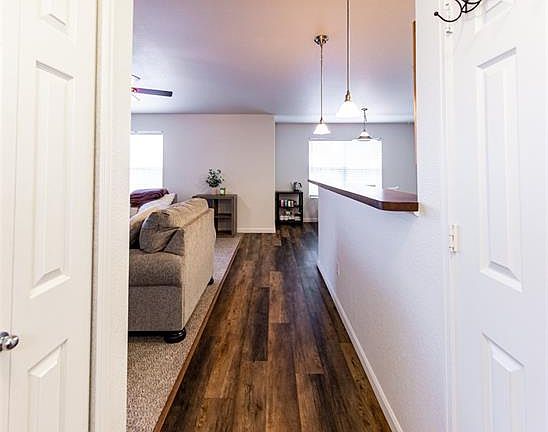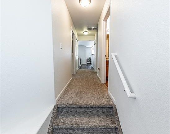 Newly updated 2 bedroom, 2 bathroom one level living in great location! Charming Spring Creek neighborhood with plenty of trees, greenspace, and places to walk. Community club house is also nearby. Come in through the attached one car garage with extra storage loft and up the steps to the main level. A large secondary bedroom and full bathroom are conveniently located away from the primary suite. Open floor plan with high ceilings in the living room, lots of windows throughout the dining area, along with a walk out to the private deck with mountain views. The kitchen features plenty of cabinet and counter top space, pendant lights over the bar top, and a good sized pantry closet. Back down the hall is a convenient laundry space and entry to the private primary suite with vaulted ceiling, walk out to deck, ceiling fan, attached bath and walk in closet. The primary bath has large walk in shower, some extra storage and connects to the oversized walk in closet. Carpet, luxury vinyl flooring, and paint only 2 years old. New roof. Water heater 2017. Central A/C! Great location between Union and Circle with quick access to I-25.