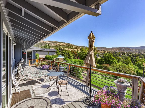 Outstanding, unobstructed views from this updated East Medford home. Wonderful deck and outdoor living spaces to enjoy the gorgeous, mature landscaping on the large (.38 acre) lot. The home has great natural light in every room. Beautiful hardwood floors. Custom kitchen cabinetry with pull out drawers and newer appliances. Large great room with gas fireplace. Generous room sizes and updated bathrooms. The main level has all the living spaces, including all bedrooms and full baths. The lower level has about 300 sq.ft which would make a perfect home office or art studio, and includes a half bath. There is a pool and a hot tub. There is also plenty of RV parking, which can hold any sized RV, or more than one. Low traffic, peaceful street. This home has it all.