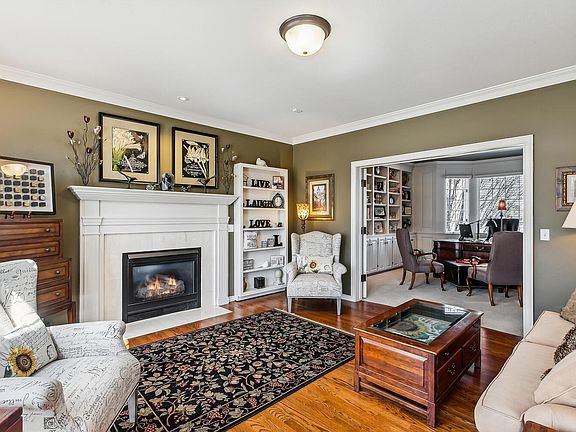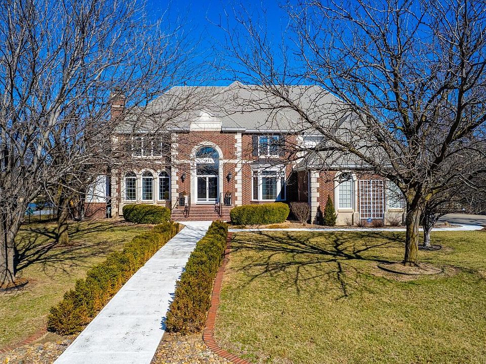 Welcome to this magnificent two-story lakefront estate in The Foliage, a gated community, boasting a combination of elegance, luxury & serenity. The 2 story grand foyer welcomes you with its sweeping staircase with wrought iron railing and soaring ceilings, setting the tone for the opulence that awaits. Entertain guests in the spacious formal living and dining areas, complete with exquisite finishes & wood floors. French doors from the living room lead to the wonderful home office/library with bookshelves adorning most of the wall and beautiful views of the pool and lake. The 2 story family room boasts a beautiful gas fireplace, wet bar with wine refrigerator and floor to ceiling windows with spectacular views of the lake and pool!! The chef's kitchen is a culinary masterpiece with stainless steel built-in appliances, granite countertops, double ovens, built-in Sub-Zero refrigerator, gas cook top, vegetable sink, trash compactor, desk, separate serving areas and eating space. The spacious sun room has possibly the best views from the house! The laundry room lends in itself to spreading out with projects while doing the family laundry. The home also has a hot water circulation system where one can have almost instant hot water at any faucet! There is a 2nd back staircase that leads to the upper level. Escape to the 1st luxurious master suite, boasting 2 closets, a two-way gas fireplace to the ensuite bath with a whirlpool tub, dual vanities & separate shower. There are 2 more spacious bedrooms connected by a Jack & Jill bathroom and the additional master suite on the upper level boasts sitting area, walk-in closet and private bathroom. The true walk out basement has a rec room, game room (18.5x26.5), playroom (18.5x14), kitchen style wet bar, 2 huge bedrooms and full bath. All 4 gas fireplaces have remotes. Step outside to your private oasis, where two pools (concrete full size & kiddie pool) beckon you to relax and rewind inside the fenced yard. The expansive outdoor living area features a covered patio, perfect for alfresco dining and entertaining, gazebo, deck & firepit...all this overlooks the lake! Experience the best of lakefront living in this stunning estate...don't miss your chance to call this exceptional property your own. Main floor sf is based on previous owner’s appraisal (quoted in MLS listing) which we do not have a copy of. Basement sf is based on CH number of 2,450 with estimated 90% of that is finished = 2,205 sf.