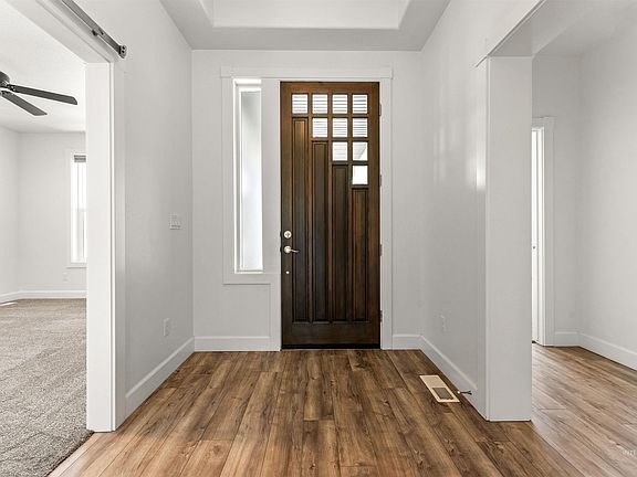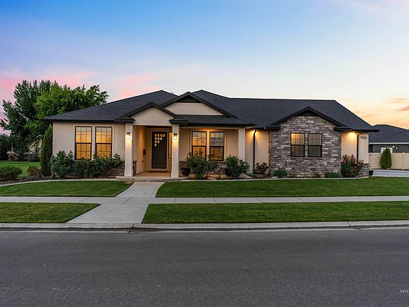 Escape to Star, Idaho, where you can enjoy the perfect blend of rural tranquility and convenience—just minutes from shopping, golfing, and dining. Enjoy this desirable single level home with a large living room that seamlessly flows into a chef’s kitchen featuring quartz counters, stainless steel appliances, double ovens, gas range & walk-in Butler’s pantry—perfect for entertaining or family gatherings. The split floor plan ensures privacy, with the master suite tucked away on one side of the home. This serene retreat includes a luxurious bathroom w/ dual vanities, jetted tub, zero-edge walk-in shower & large walk-in closet. Relax with cool evenings under the covered patio in the east-facing backyard. Outdoor amenities include a storage shed & a cement pad for boat storage. The large 3-car garage w/ extra storage space further enhance this exceptional home. An open common space to the north adds to the overall privacy and spaciousness.
