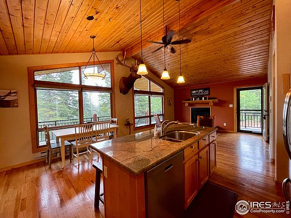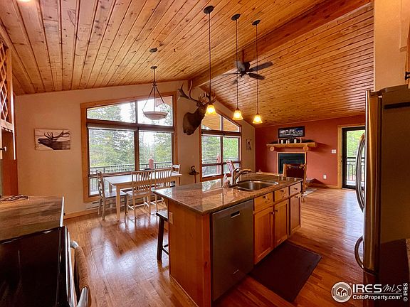 Gorgeous mountain home set in the trees, beautifully updated and impeccably maintained on 3 private acres with stunning lake views. The spacious home has a beautiful kitchen with upgraded cabinets and granite countertops, gorgeous hardwood floors, rustic wood accents throughout, vaulted ceilings showcase large windows letting in lots of natural light. The warm and cozy indoor space is complimented by a large deck perfect for stargazing or bird watching- lots of hummingbirds, or take in the moose travelling through. Enjoy the firepit while watching the sunset through the trees. Surrounded by National Forest, Crystal Lakes is known for mountain recreation, ponds are stocked with 1700 pounds fish every month during the summer, dozens of hiking trails. 7 Ponds and private access to the North Fork of the Poudre River. Plus, all this is only 60 miles from Ft Collins, you can enjoy all four seasons in this desirable mountain property. HOA maintains and plows the main roads in the winter, Ottawa way has easy access in and out. 3 total bedrooms, 1 is non conforming. Seller is including small John boat with electric motor and boat trailer and 2018 ranger 500 side-by-side making for easy traveling back and forth to the ponds, extensive list of items that will stay with the home makes this purchase move in ready and one heck of a deal.