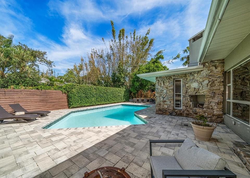 One or more photo(s) has been virtually staged. NEW PRICE! Perched 55 feet above sea level with an elevation certificate to prove it, this 4-bedroom, 4-bathroom home is nestled in the highly desirable Glenwood Estates, a neighborhood adored by families for its mature trees, spacious streets, multiple parks, and unbeatable location just 5 minutes from Crest Lake Park, Dunedin, Clearwater Beach, and two top-tier golf courses. While not fully updated, the home offers incredible potential with its split-bedroom layout, a bright interior, and two giant living rooms (one with a fireplace). Set on a massive 0.26-acre corner lot, the property offers unmatched privacy with distant neighbors and unobstructed views from the living room of an expansive 4-acre field of pine trees and no construction in sight. Built like a fortress, the home sustained zero damage during recent storms, providing peace of mind alongside its elevation and incredibly affordable transferable flood insurance. The primary suite features sliding doors to the large Tuscan-inspired backyard oasis, complete with a sparkling pool, a jasmine wall backdrop, and plenty of room for entertaining or even expanding the house. The neighborhood also benefits from a modern sewer system installed as part of a multimillion-dollar city drainage project, ensuring zero flood risk. Seller has provided a quote for roof replacement for buyer convenience. All offers will be entertained — don’t miss this opportunity!