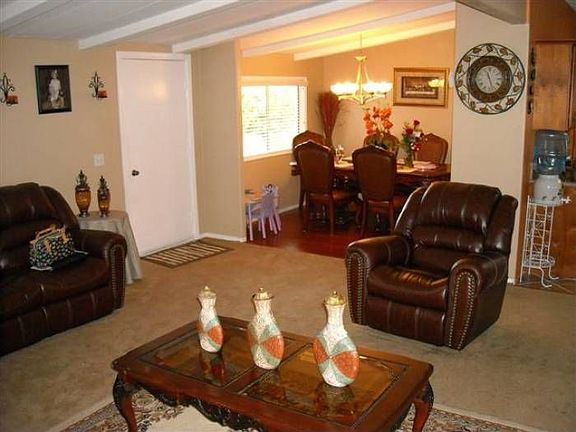 Beautifully Upgraded Home in a gated community! Large open living room. Amazing kitchen and formal dining room! 3 spacious bedrooms! Wonderful patio area for entertaining. Close to shopping and freeways! Well maintained complex and clubhouse! Corner space lot! VERY LOW SPACE RENT!