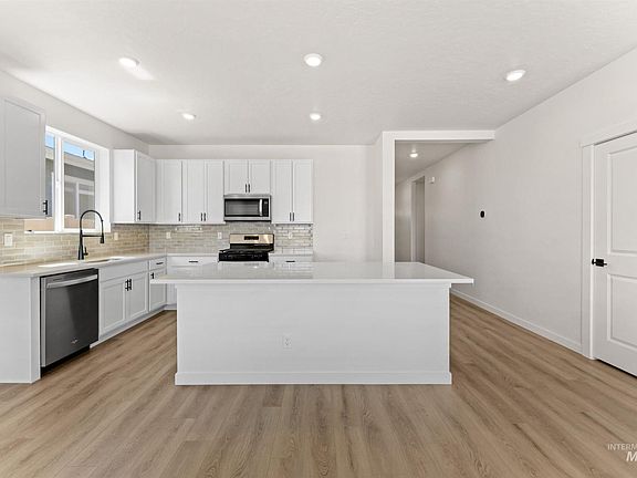 Come see this ENERGY STAR® certified home built by KB Home. This beautiful, single-story home showcases an open floor plan with 9-ft. ceilings and luxury vinyl plank flooring throughout main living areas. Enjoy cooking and entertaining in the modern kitchen, which boasts an island, stainless steel appliances, quartz countertops, full-height backsplash and single-basin undermount sink. Relax in the primary suite, which features a walk-in closet and connecting bath that offers a dual-sink vanity and spacious shower. The back patio provides the ideal setting for outdoor entertaining and leisure. PHOTO'S SIMILAR