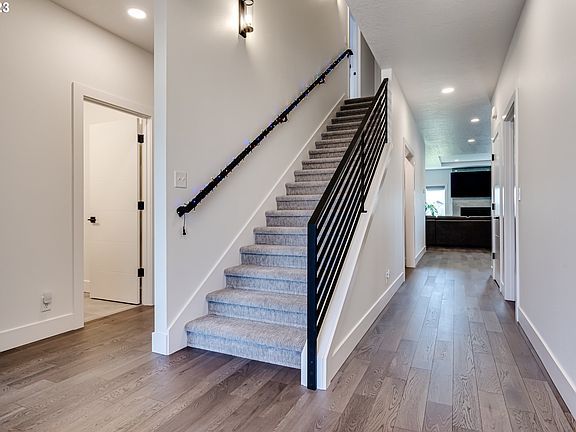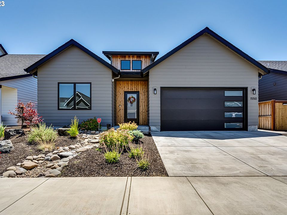 Luxury modern living in the highly desirable "Nines" neighborhood in North Gilham. This 2021 Proden Home boasts five bedrooms and three full bathrooms over 2500 sqft. Easily maintained northwest inspired front yard leads to the front entry surrounded by cedar siding. The great room embraces a large kitchen with stainless appliances and it opens to the dining area where it is perfect to host memorable gatherings with family and friends. Spacious primary suite and two other bedrooms on the main level provide easy access to privacy. Another two bedrooms and a full bath can be found on the upper level, providing flexibility for family and guests. High-end features include: custom walk-in pantry with wine bar, coffered ceiling, quartz counters in the kitchen and bathrooms, stunning master bath with soaking tub and tile shower, LED energy efficient lighting, and generous storage throughout. The sizable backyard is back to the neighborhood park, custom design extends the covered patio to a paved area and a grass area for a variety of outdoor activities.